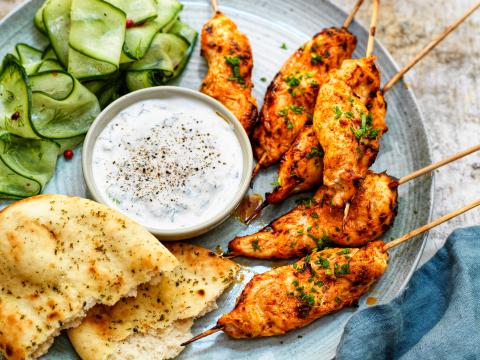 Dat doe je met een uitgebreid basispakket kruiden en specerijen. Wat niet mag ontbreken: koriander, komijn, kurkuma, kerriepoeder, garam masala, kaneel, fenegriek, gember, kardemom en mosterdzaad. Je vindt ze in de meeste supermarkten. Vul aan met rijst, chilipepertjes en yoghurt.