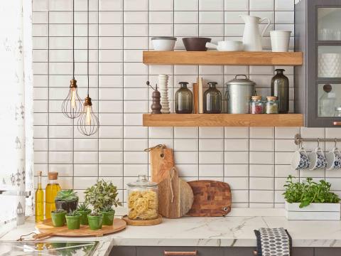 Maak ook je keukenkasten grondig schoon. Stofzuig ze eerst, in alle hoekjes en kieren en ook in de voorgeboorde gaatjes voor de legplanken. Was de binnenkant van de kastjes af met een sopje van schoonmaakazijn en zeep en poets ook goed in de hoekjes en aan de achterkant van de legplanken. Haal vervolgens de haardroger boven om de kasten goed droog te maken in hoekjes en kiertjes.