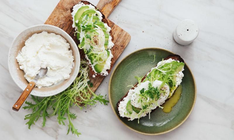 Vegan ricotta kun je zelf maken. Laat 200 gram cashewnoten weken in water. Mix ze vervolgens tot een gladde pasta met 200 gram zijden tofoe, 1 eetlepel olijfolie, het sap van 1 citroen, een goede snuif zout en 2 koffielepels edelgistvlokken. Deze vegan versie kun je op dezelfde manier gebruiken als echte ricotta.