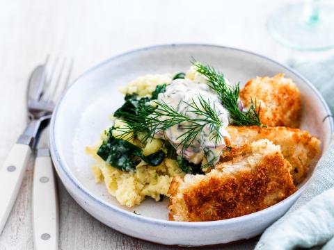 Waar past spinaziepuree beter bij dan bij een combinatie van vis én spek?