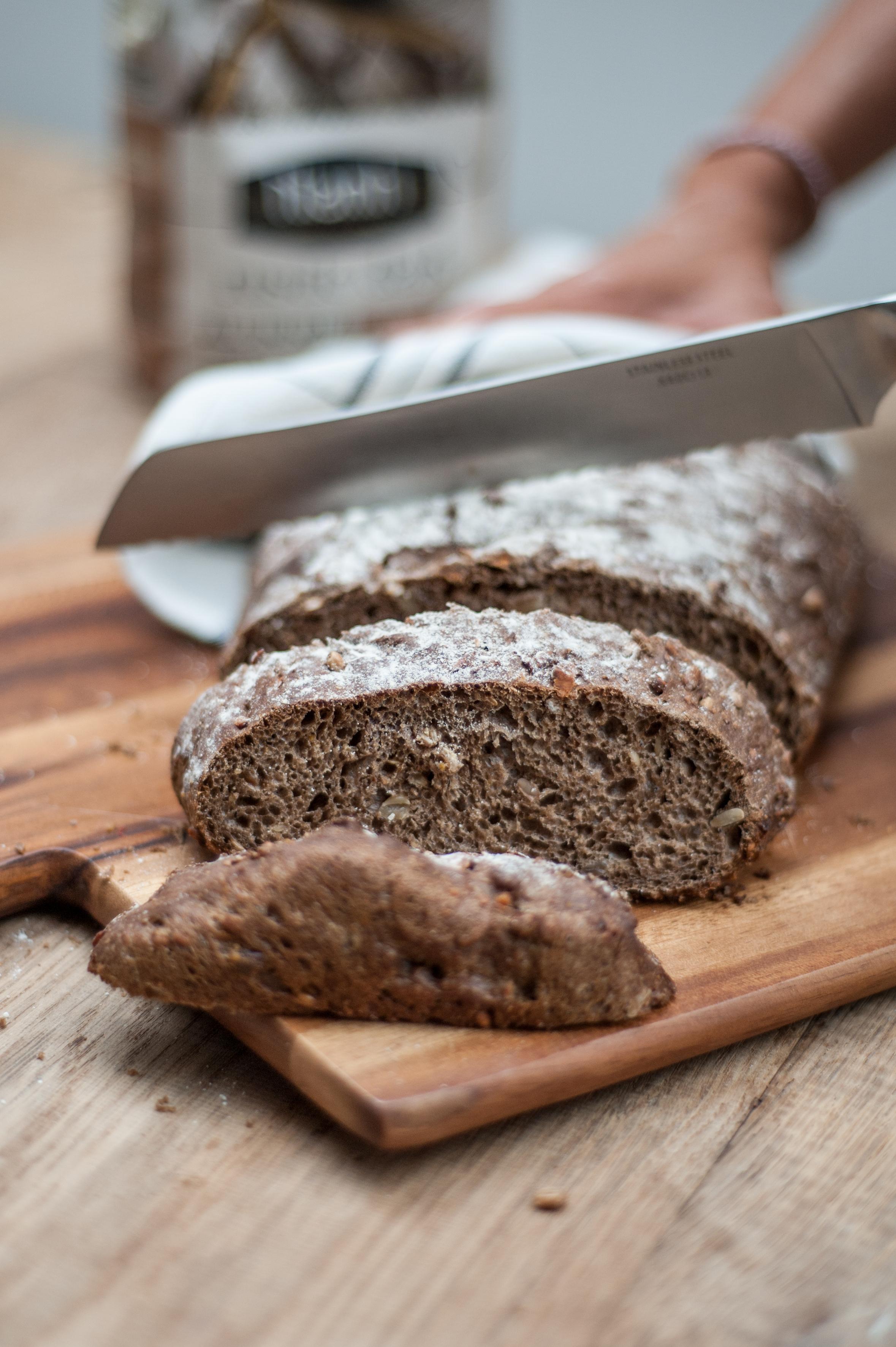 Met de All-in rustic dark broodmix van Niamh wordt brood bakken kinderspel! Wij voegden stukjes dadel toe, een licht zoete toets die perfect past bij de walnoot, desem en mout die al in de mix zitten.