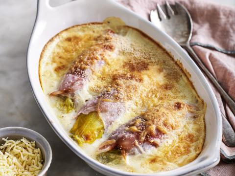 Hét ultieme wintergerecht? Witloof met ham uit de oven met puree! En vergeet zeker dat krokante kaaskorstje niet, heerlijk!