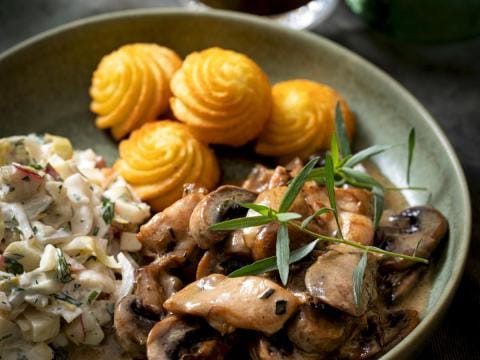 Zaterdag: kipstoofpotje met pommes duchesse en witloofslaatje
