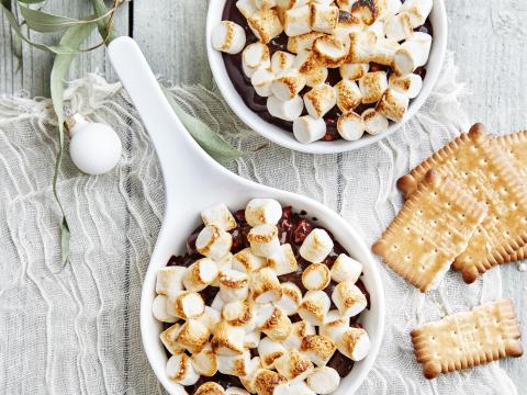 De kinderfavoriet op het dessertenbuffet! Dit luchtige schuimpje wordt gemaakt van suikersiroop en gelatine en is de ultieme afwerking van een gezellige warme chocomelk of je kerstdessert. Geef ze in een kommetje bij een chocoladefontein, gebruik ze als afwerking van brownies en ijs, maak er zelf s’mores mee in een raclettepannetje of werk er een pavolva mee af: marshmallows zijn altijd een schot in de roos.