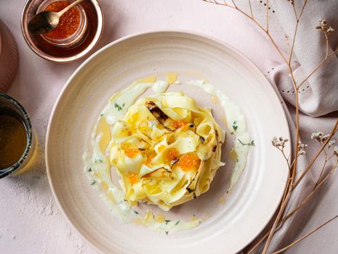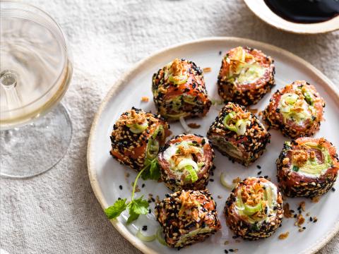 De kleine, zilte en knapperige gepasteuriseerde zalmeitjes worden ook wel kuit genoemd en dragen het ASC-label voor verantwoorde kweekvis. Lekker klassiek op een blini, een gepoft aardappeltje, maar ook als afwerking van een soepje, gepocheerd ei of pasta. Het geeft elk vishapje een feestelijke toets en ploft ook zo lekker open op je tong als je het opsmult.