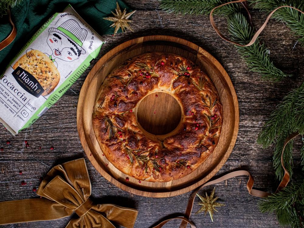 Meng water en een vleugje olijfolie met de bakmix voor Focaccia van Niamh en tover deze kraakverse focacciakrans met gemak uit je eigen oven!