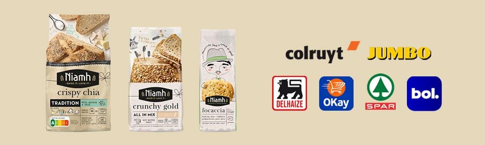 Niamh, dat is bakken met een creatieve twist! Dit Belgische merk brengt kleur en inspiratie in de keuken met broodmixen die verrassen met vernieuwende ingrediënten, speelse verpakkingen en recepten die je zin geven om zelf aan de slag te gaan.