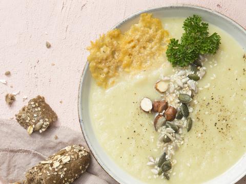 De zilte finesse van garnalen tilt aardpeer naar restaurantniveau. Werk een fluweelzachte aardpeercrème eens af met een handje garnalen.