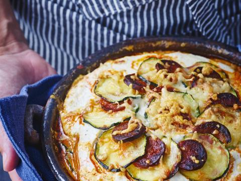 Als het woord lasagne valt, kan het niet tegenvallen aan tafel. Deze zoete-aardappellasagne met chorizo en ricotta staat bij ons herhaaldelijk op het menu.