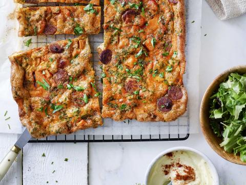 Probeer bijvoorbeeld dit budgetvriendelijk gerechtje van Libelle Lekker-chef Natalie: een frittata met chorizo, zoete aardappel en gruyère met aioli.
