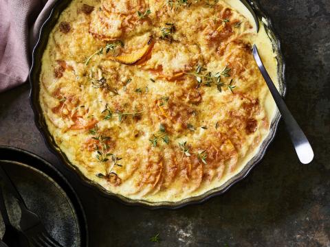 Overdreven veel kaas maakt elke ovenschotel lekker, maar het combineert uitzonderlijk goed met het zoete van de bataat. Je kunt ook een andere kaas gebruiken voor deze gratin, zoals brie, feta of parmezaan.