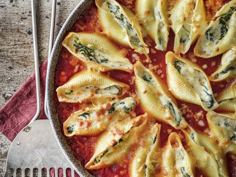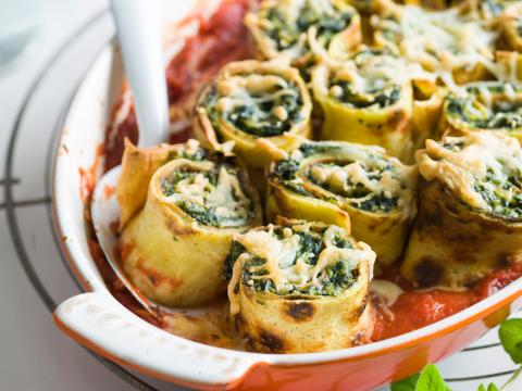 Spinazie houdt ervan om ingepakt te worden. In deeg wordt ze extra zacht en romig. Denk aan flensjes met spinazie en kaas, cannelloni, ravioli of hartige taarten.