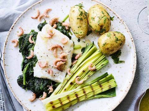 Spinazie is heerlijk bij witte vis zoals kabeljauw, zeebaars of schelvis: ze geeft body zonder te overheersen. Extra lekker onder een krokant korstje, in een romige saus of in laagjes (vislasagne!). Ook feestelijk met garnalen.