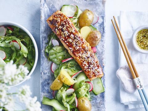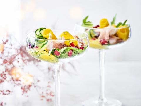 Gerookte of gelakte zalm krijgt een frisse lift van komkommer. Denk aan tartaar, rolletjes of een zomers slaatje naast een warm gerecht.