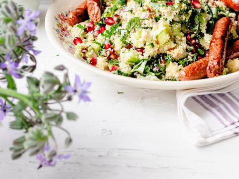 Couscous vraagt bijna om komkommer. In tabouleh zorgt ze voor frisse beet tussen alle kruiden en granen.