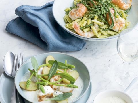 Witte asperges worden vooral gegeten in België en Nederland. Ze zijn zacht, verfijnd en lichtzoet van smaak. Je moet ze wel zorgvuldig schillen: van net onder het kopje tot beneden. Doe je dat niet grondig genoeg, dan blijven ze draderig … en die draden wil je niet proeven in een verfijnd lentegerecht. Witte asperges worden klassiek gegaard in lichtgezouten water. Gooi de schillen niet weg, maar trek er een geurige bouillon van. Ideaal voor aspergesoep of een smaakvolle risotto! In het begin van het seizoen zijn witte asperges vaak duurder. Vraag daarom zeker eens naar de kopstukken, dat zijn topjes die tijdens het oogsten zijn afgebroken.