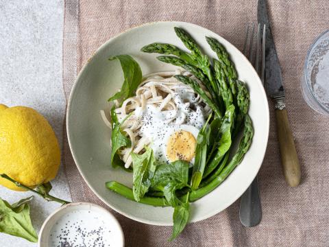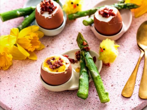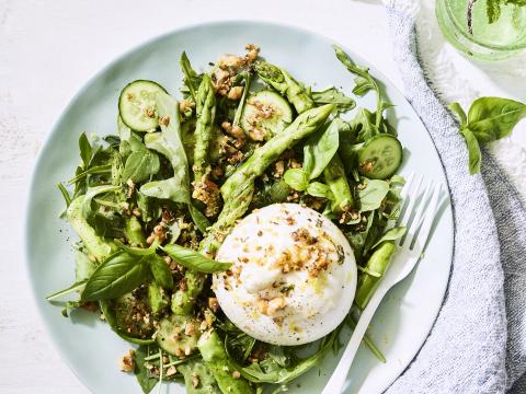 Lekker met een zachtgekookt ei, burrata en geitenkaas.