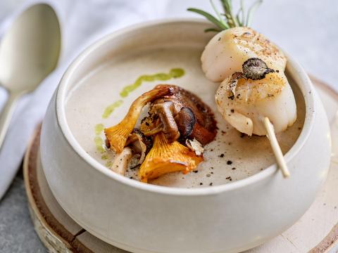 Een scheutje ‘extra vierge’ olijfolie is altijd lekker in soep. Wil je het iets specialer maken? Kies dan voor basilicum- of truffelolie.