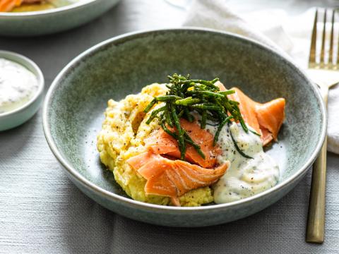 Breng het vocht van de peertjes aan de kook en bind het met de sausbinder. Kruid de saus met peper en zout.