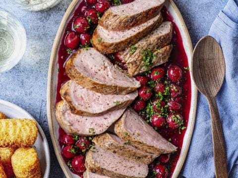 Varkenshaasje met warme kersensaus