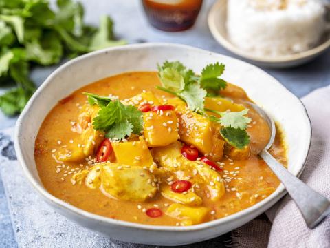 Kipcurry met mango en kokosmelk