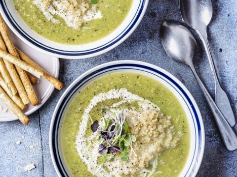 Groene maaltijdsoep met quinoa