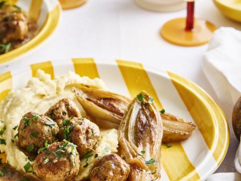 Puree met balletjes en gestoofd witloof