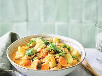 Vlaamse curry met kip, bloemkool, aardappelen en wortelen