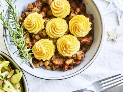 Hachis parmentier van wintergroenten met pommes duchesse en een witloofslaatje
