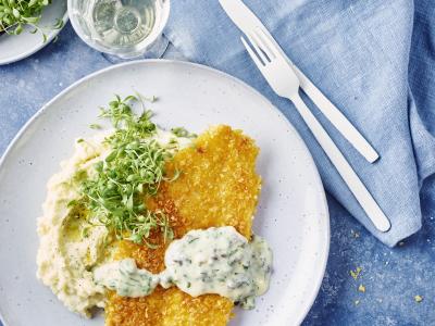 Rode poon met knolselderpuree en een krokant kruidenkorstje