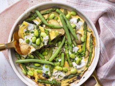 Lentefrittata met krieltjes, groene groenten en ricotta