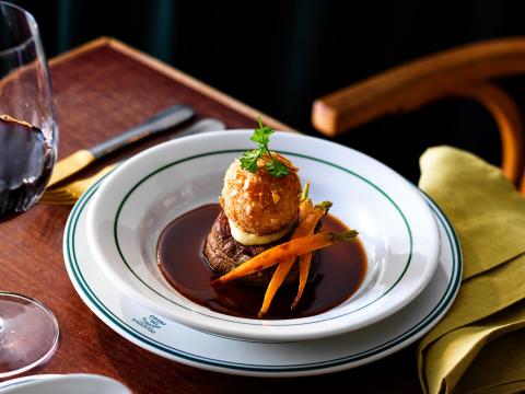 Gegrilde koningsoesterzwammen met parmezaancrème en gefrituurde eidooier