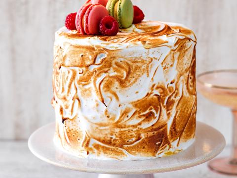 Carrot cake-plaattaart met marshmallows en gezouten karamel