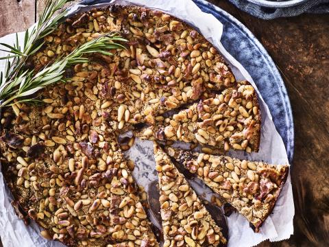 Italiaanse walnotentaart met rozemarijn en sinaasappel