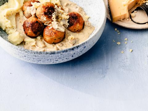 Kipballetjes met kazige champignonsaus