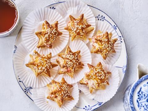 Gevulde bladerdeegsterretjes met een rivierkreeftslaatje