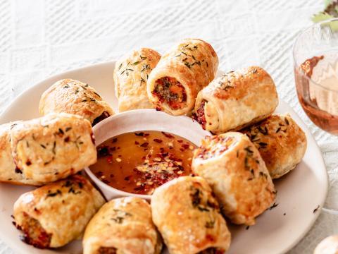 Bladerdeegwieltjes met paprika en kruidenkaas