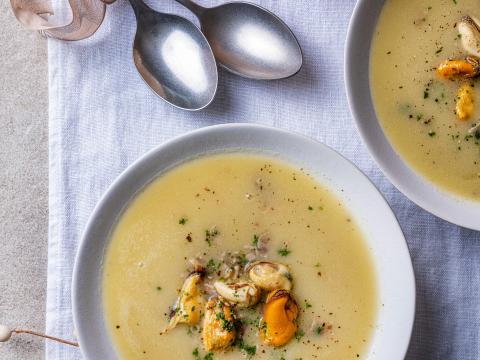 Aardappelpuree met knolseldersteak en kappertjessaus