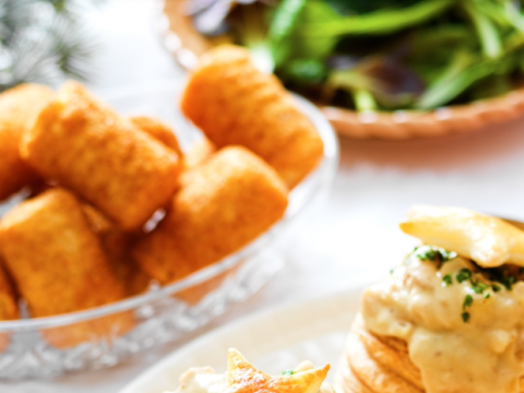 Bloemkool-aardappelkroketjes met little gem en mosterdmayonaise
