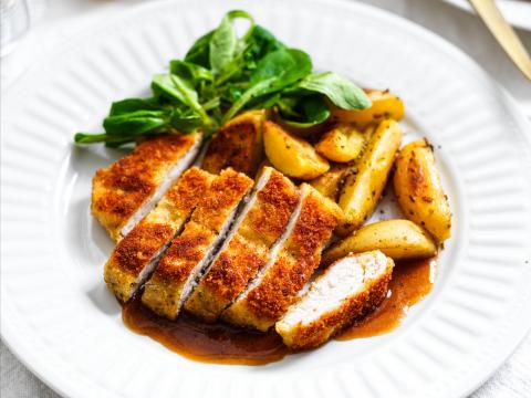 Met parmezaan en panko gepaneerde kalkoenlapjes
